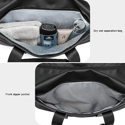 Leather Duffle Bag for Men, Weekender Overnight Bag for Women Carry On Travel duffel with Laptop Compartment & Wet Pocket Small Gym Tote for Sports, Business Trips, Traveling, PU Black, 30L 5
