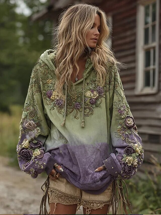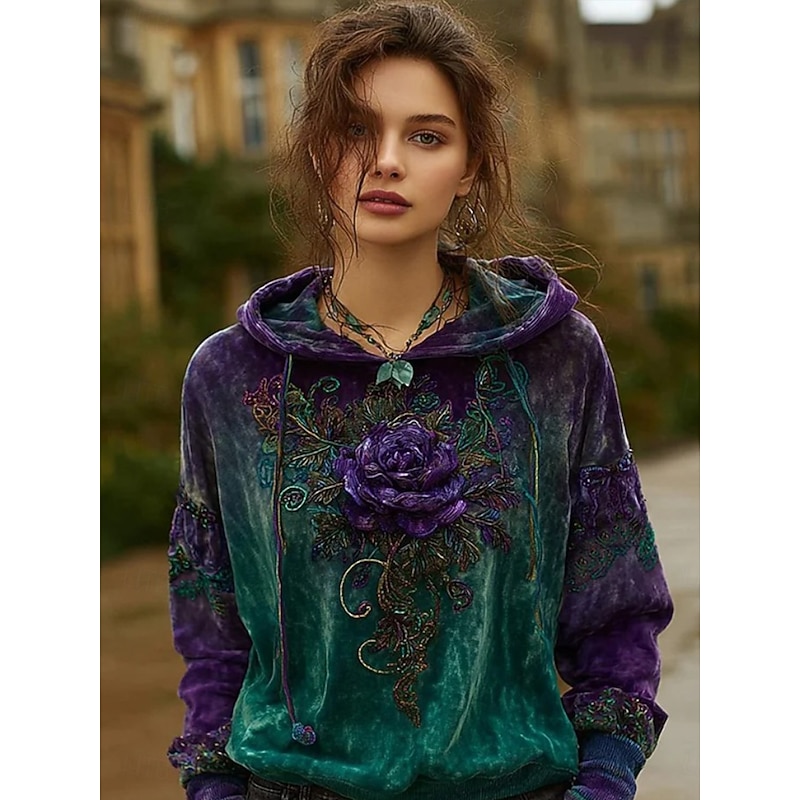 More information about Women's 3D Print Vintage Boho Hoodie Patchwork Hoodie Sweatshirt Floral Pullover Sweatshirt Oversized Casual Warm Active Hooded Street Dailywear Patchwork Purple Spring Fall Winter