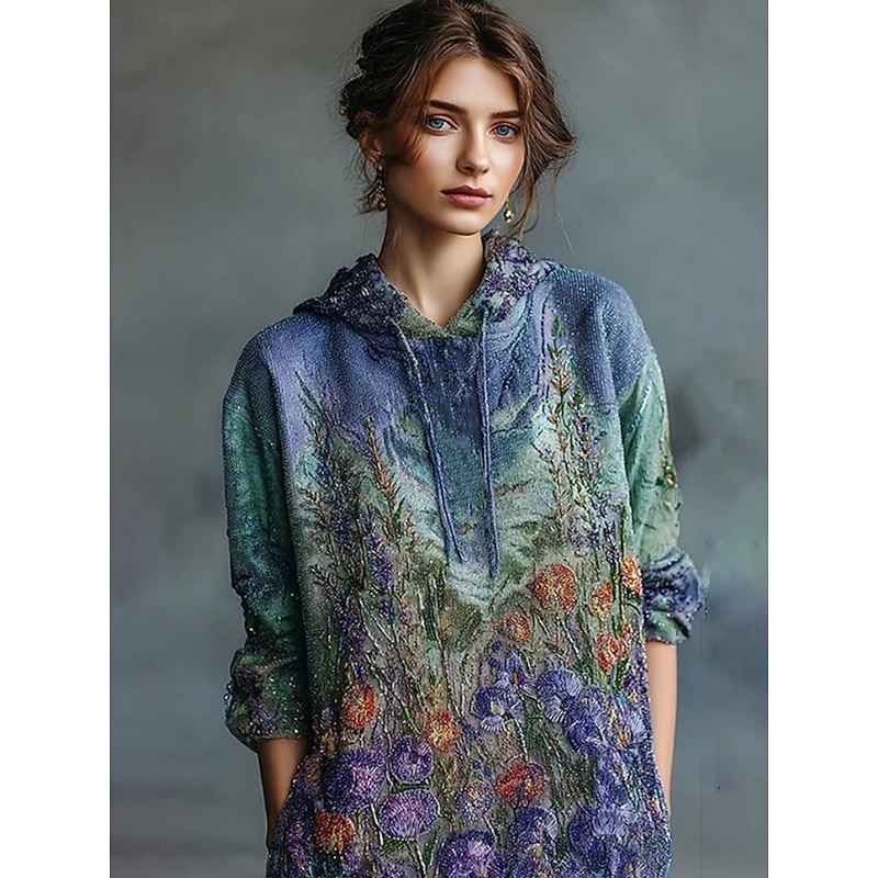 HOT ! Women's 3D Print Vintage Boho Hoodie Patchwork Hoodie Sweatshirt Floral Pullover Sweatshirt Oversized Casual Warm Active Hooded Street Dailywear Patchwork Purple Spring Fall Winter