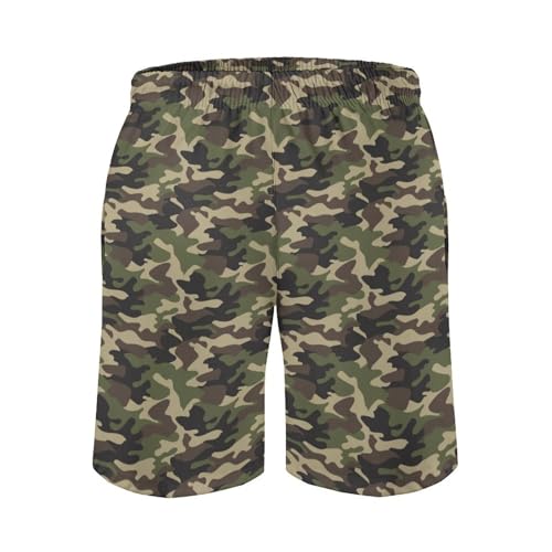 • Quick-Dry and Supportive Design: Designed with a mesh lining for support and an adjustable drawstring waist, these Dark Camouflage Green Print board shorts for men swim combine comfort with function. Ideal for those seeking mens quick dry shorts that stay in place while staying cool