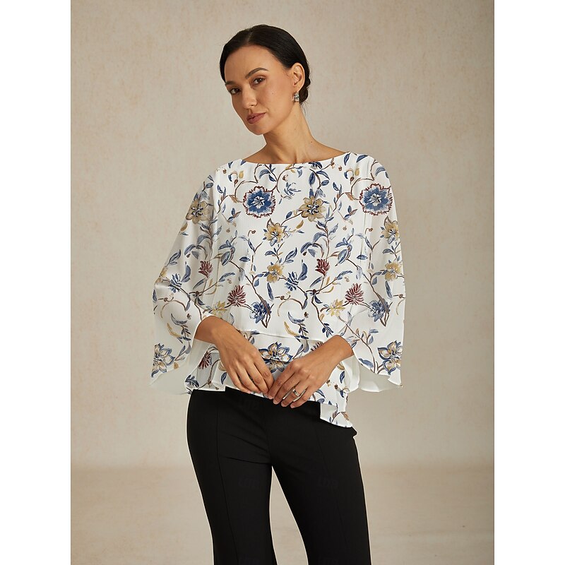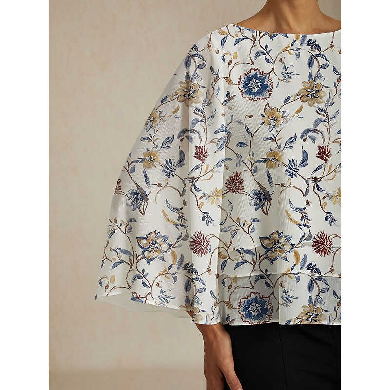 More information about Women's Floral Print Layered Top with Bell Sleeves – Loose Fit Tiered Blouse in Lightweight Crepe Fabric