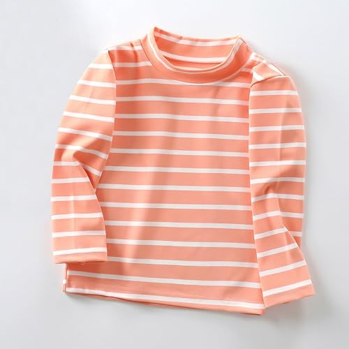 Toddler Girls Long Sleeve Striped Turtleneck Tee Shirts Cotton Soft Pullover Slim Stretchy Crewneck Tops Kids Boys Undershirt 6