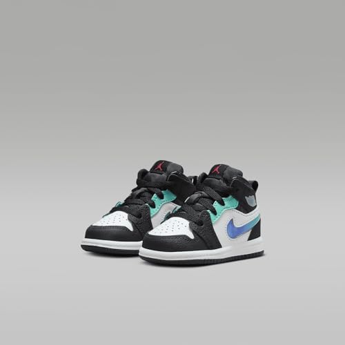 Jordan 1 Mid SE Baby/Toddler Shoes (FQ8097-001, Black/White/Hyper Jade/Siren Red) 6