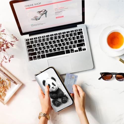 RFID Blocking Wristlet Wallet for Women – Slim PU Leather Zipper Clutch, Cute Credit Card Holder Purse with Wrist Strap for Ladies,Cute Panda 3