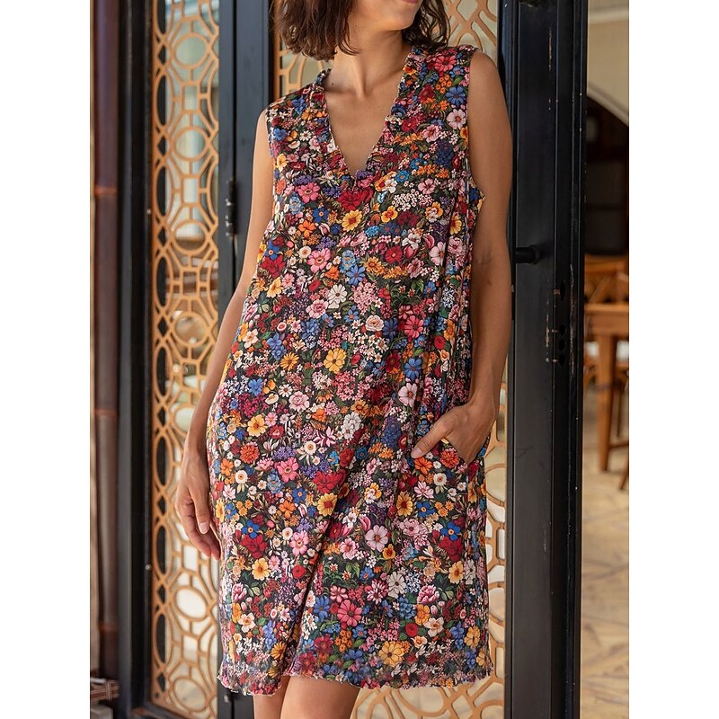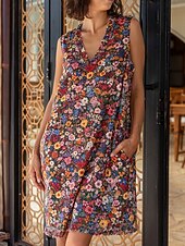 More information about Women's Midi Dress Sundress Shift Dress Ruffle Dress Vacation Party Birthday Party Beach Regular Fit Floral Graphic Sleeveless V Neck Yellow Pink Red Blue Summer