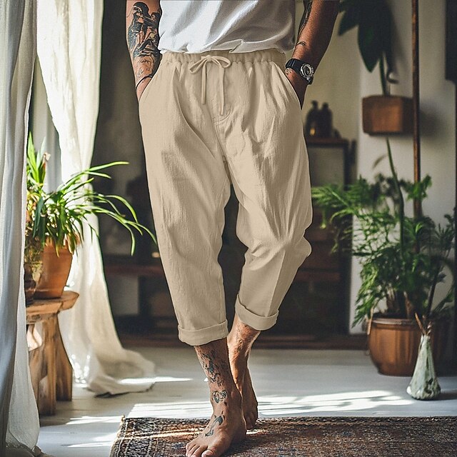 Men's Linen Pants Trousers Summer Pants Baggy Pants Beach Pants Front Pocket Pleats Straight Leg Plain Comfort Breathable Full Length Outdoor Vacation Party Vacation Fashion Loose Fit Black White 9