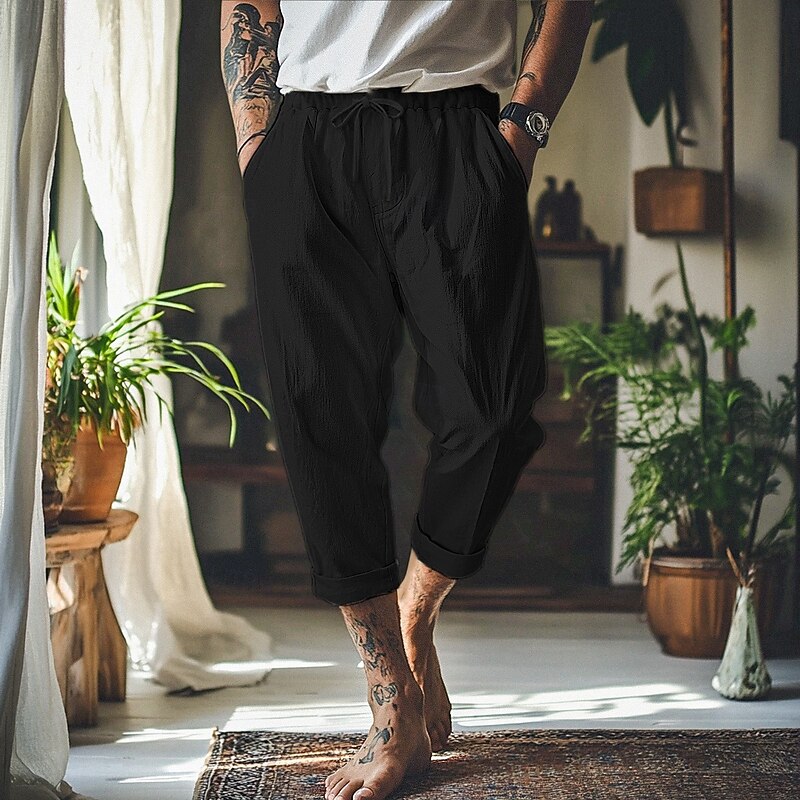 More information about Men's Linen Pants Trousers Summer Pants Baggy Pants Beach Pants Front Pocket Pleats Straight Leg Plain Comfort Breathable Full Length Outdoor Vacation Party Vacation Fashion Loose Fit Black White