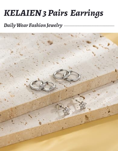 3 Pairs Hoop Earrings for Women 925 Sterling Silver Trendy 14K Gold Plated Huggie Earring Silver Hypoallergenic Stud Cartilage Earring Sets for Multiple Piercing Cute Small Jewelry Gift 4