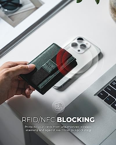 • RFID/NFC BLOCKING - Leather slots especially RFID braided fabric, protect your cards from unauthorized wireless scanning and against electronic pickpocketing.