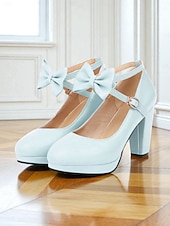 Women's Light Blue Platform Mary Jane Heels - Vintage 1950s Lolita Style Chunky Block Heels with Bow Ankle Strap, Perfect for Weddings, Cosplay and Elegant Evening Parties 17