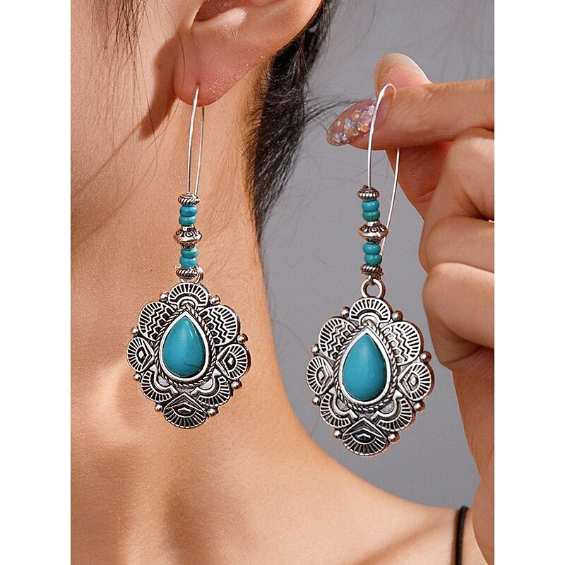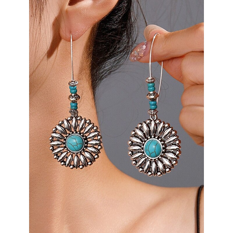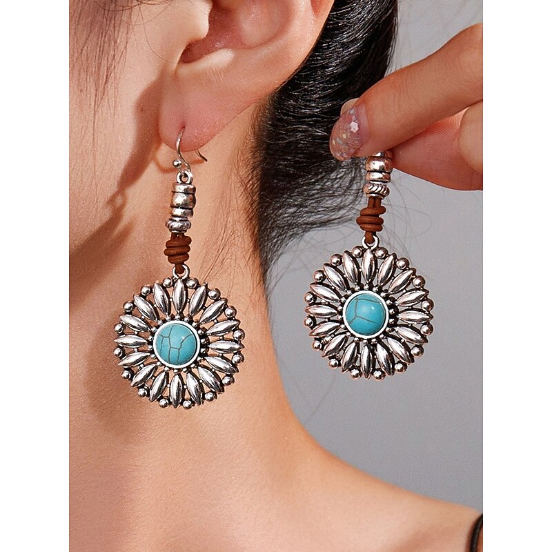 $7.99 - Women's Bohemian Flower Dangle Earrings with Turquoise Stone, Vintage Alloy Drop Earrings for Casual Wear, Beach and Parties 2025. Shop for cheap Women's Earring online? Buy at lightinthebox.com on sale today!