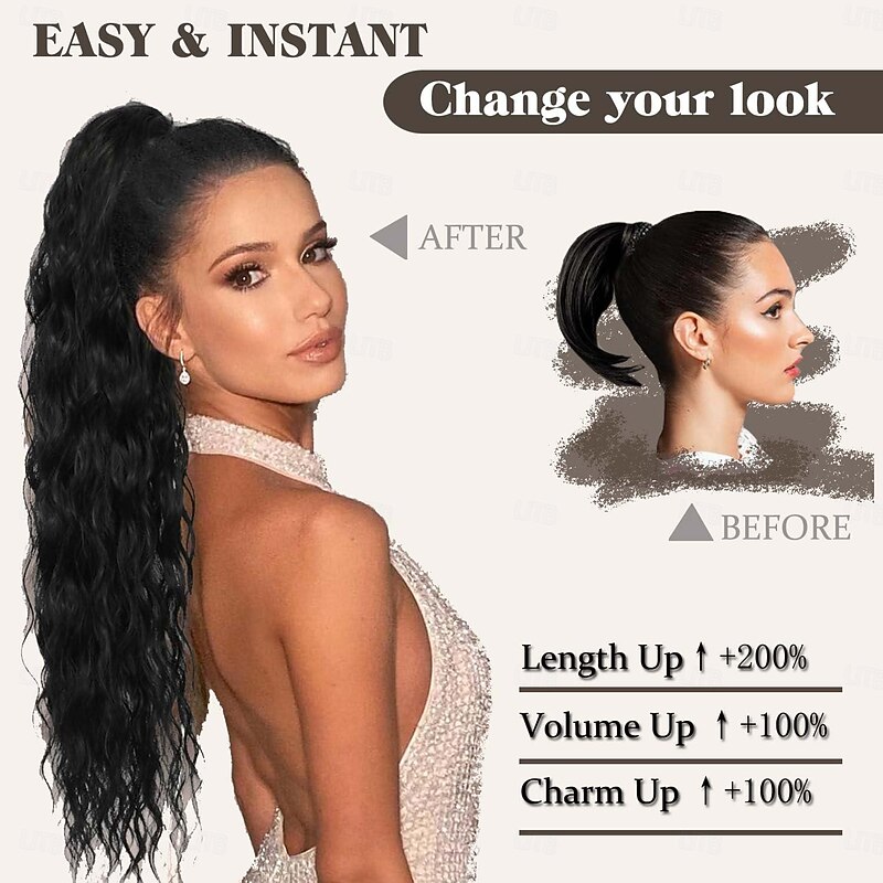 $9.99 - 26 Wavy Curly Black Ponytail Extension Drawstring Clip in Fake Hair 2025. Shop for cheap Ponytails online? Buy at lightinthebox.com on sale today!