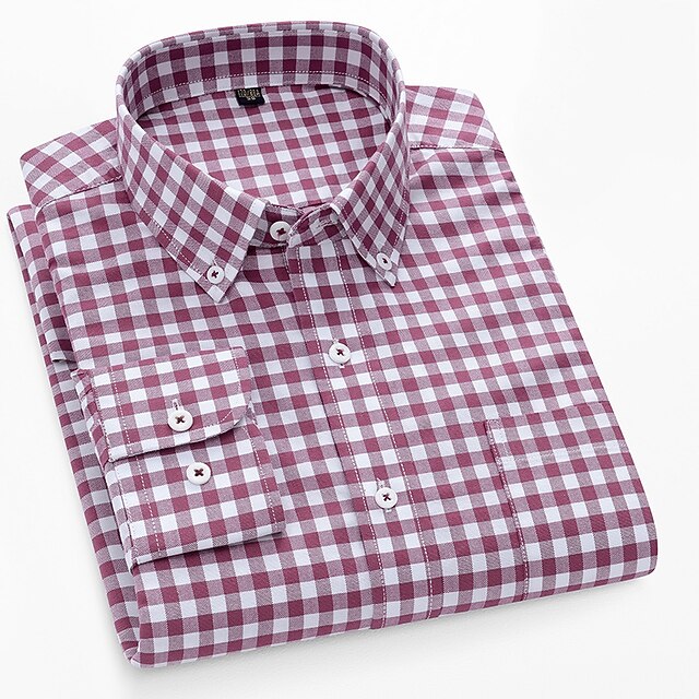 More information about Men's Dress Shirt Button Down Shirt Non Iron Shirt Oxford Shirt Plaid / Striped / Chevron / Round Wedding Office & Career Light Yellow Light Pink Light Blue Light Green Long Sleeve Shirt Collar All