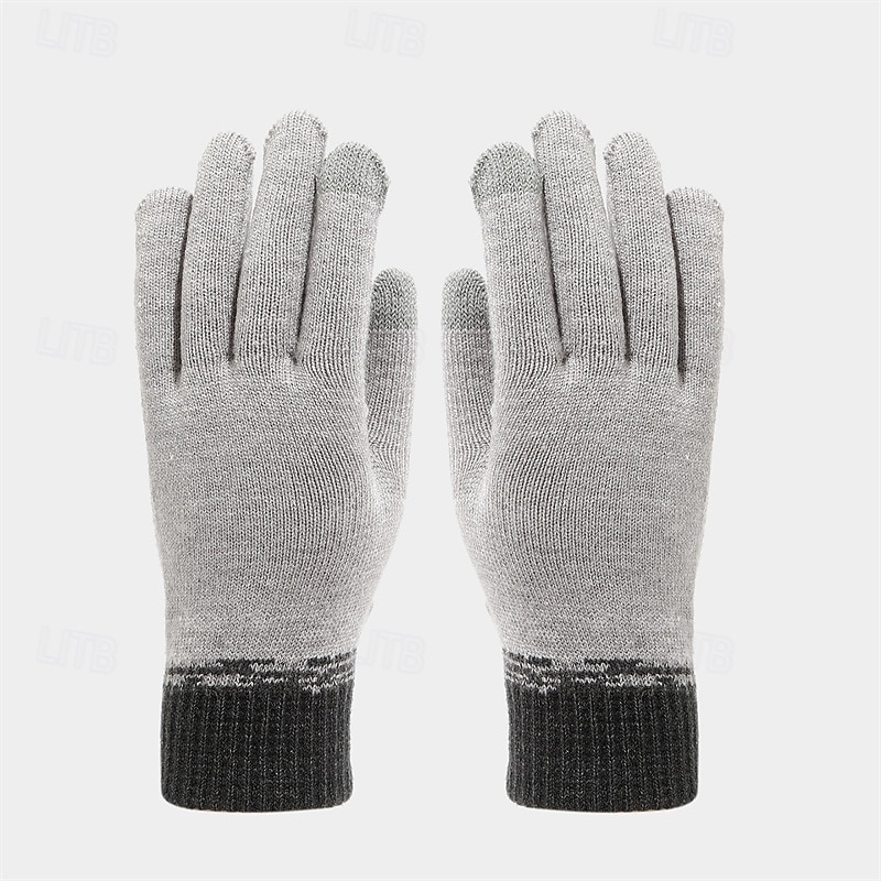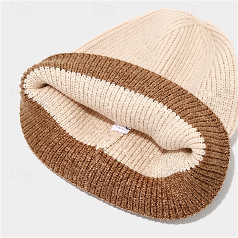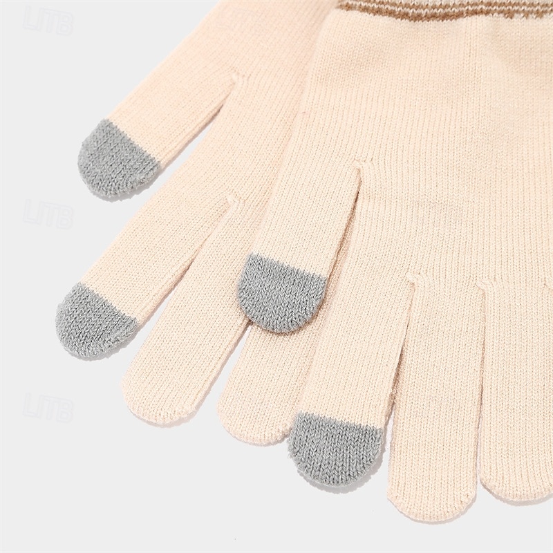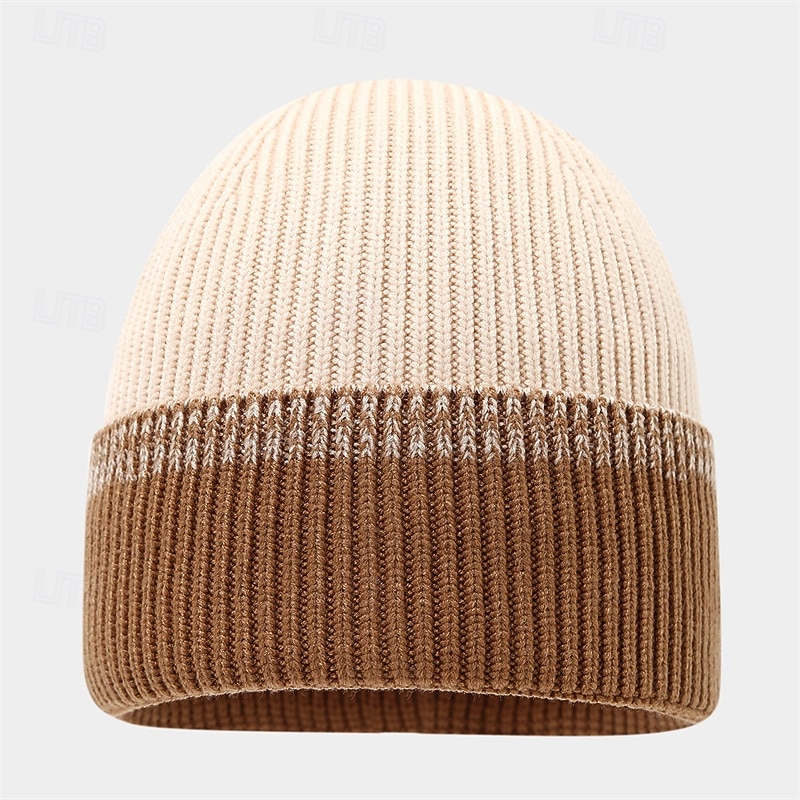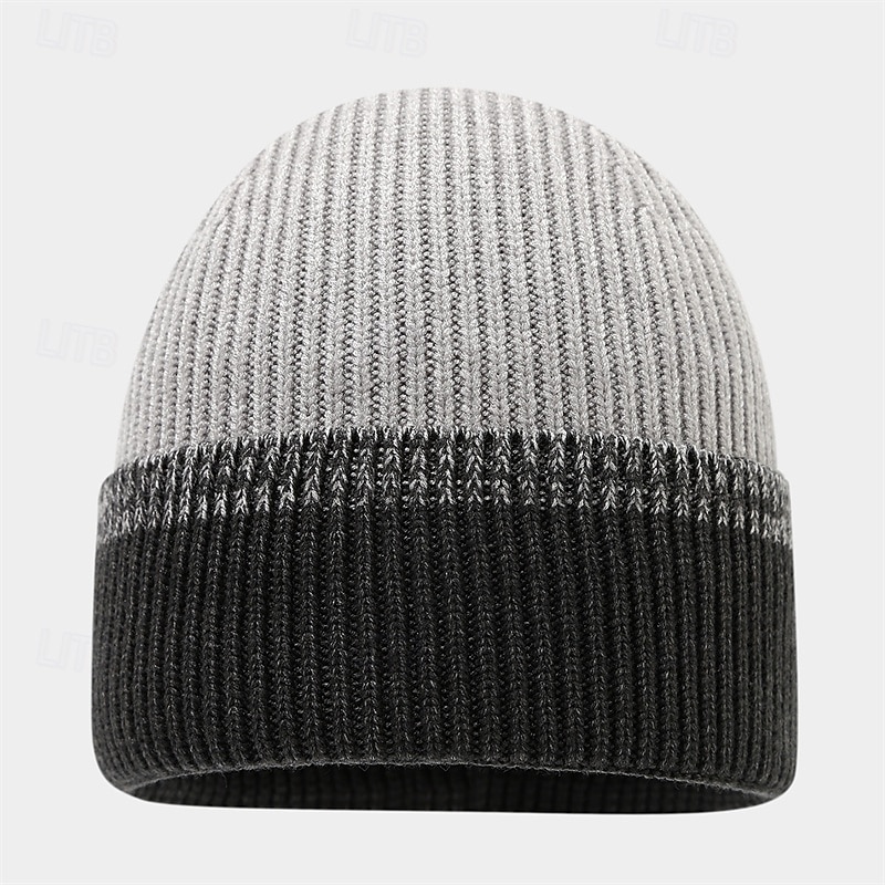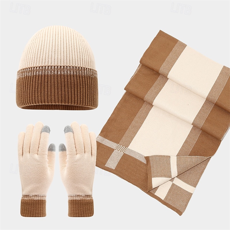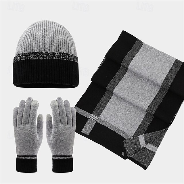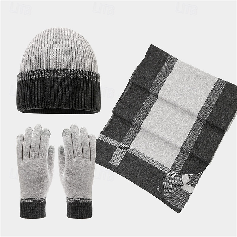 More information about Men's Beanie Hat Winter Hats Beanies Hat & Gloves Set Winter Beanie khaki Light Grey Acrylic Fibers 3-Piece Knitted Cozy Daily Wear Going out Color Block Warm