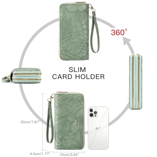 • Wristlet Women's Wallet: This ladies clutch purse comes with a detachable wristband, perfect for busy women to wear on the go, safe and convenient. The double-zipper wallet for women with phone pockets measures 7.87 inches x 4.13 inches x 1.57 inches, enough to accommodate most sizes of phones