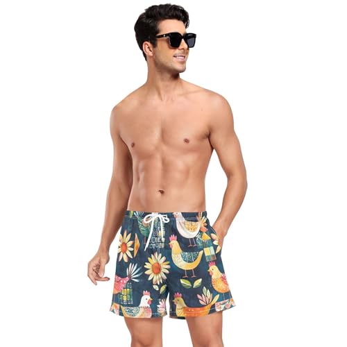 More information about xigua Colorful Rooster Mens Swim Trunks with Liner, 5 inch Quick Dry Mens Boardshorts for Beach