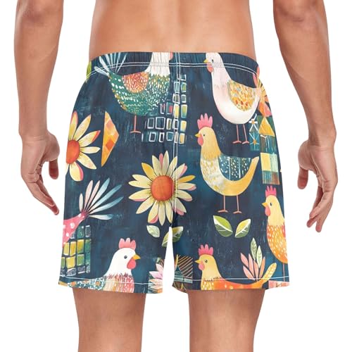 xigua Colorful Rooster Mens Swim Trunks with Liner, 5 inch Quick Dry Mens Boardshorts for Beach 5