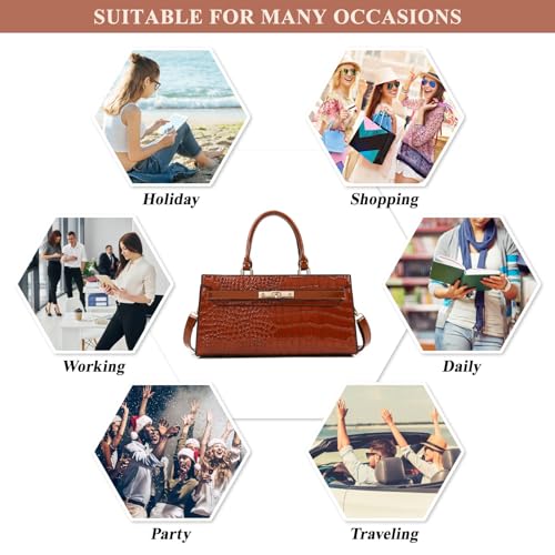 Women PU Leather Handbag Retro Crocodile Print Large Capacity Satchel Ladies Stylish Top Handle Crossbody Shoulder Bag 6