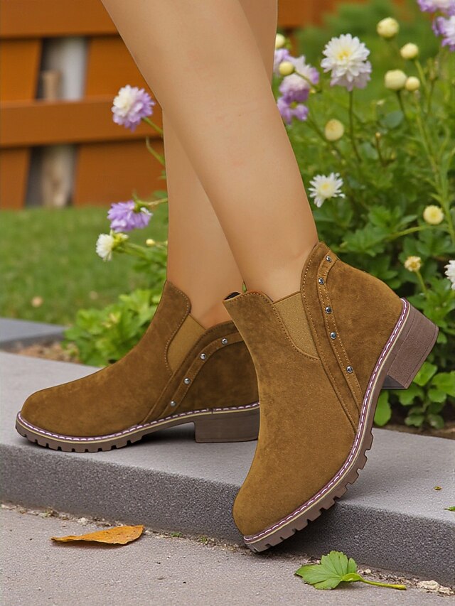 Women's Chunky Heel Chelsea Ankle Boots – Round Toe Booties with Studded Detail for Fall Fashion, Farm Visits and Outdoor Walks 7
