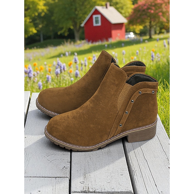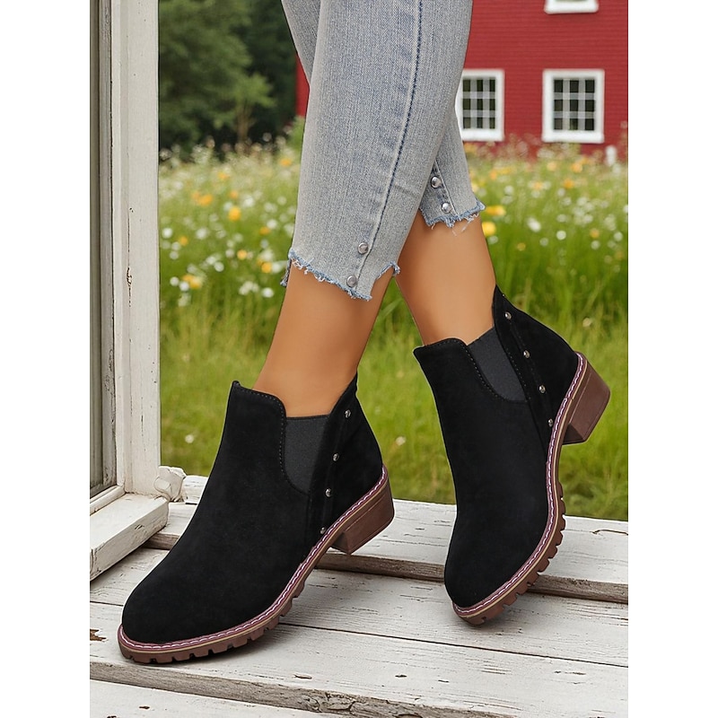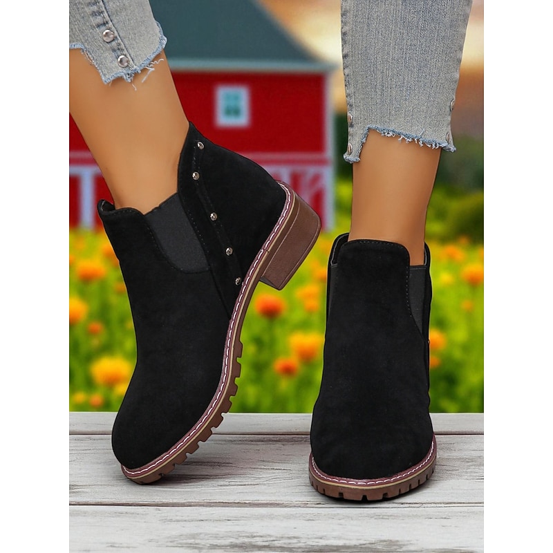 Women's Chunky Heel Chelsea Ankle Boots – Round Toe Booties with Studded Detail for Fall Fashion, Farm Visits and Outdoor Walks 12