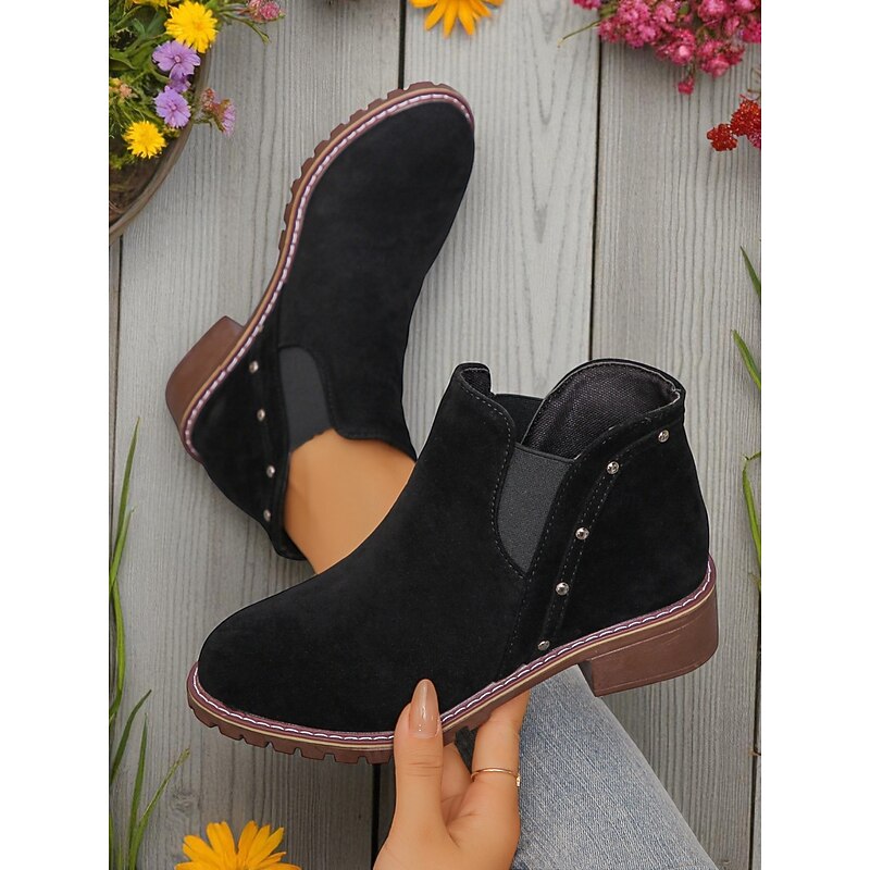 HOT ! Women's Chunky Heel Chelsea Ankle Boots – Round Toe Booties with Studded Detail for Fall Fashion, Farm Visits and Outdoor Walks