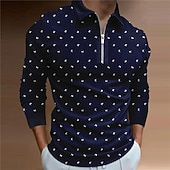 More information about Men's Zip Polo Shirts Golf Shirt Long Sleeve Polo Shirts Collared Shirts Business Casual WorkWear Formal Wear Festival Wear 3D Print Quarter Zip Polo Olive Green Wine Navy Blue