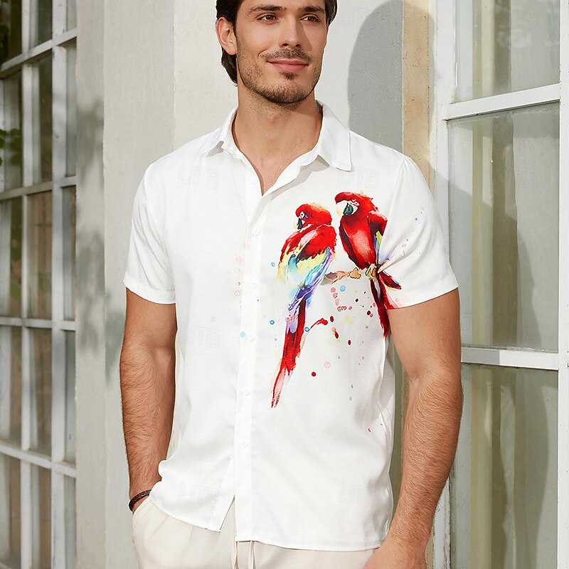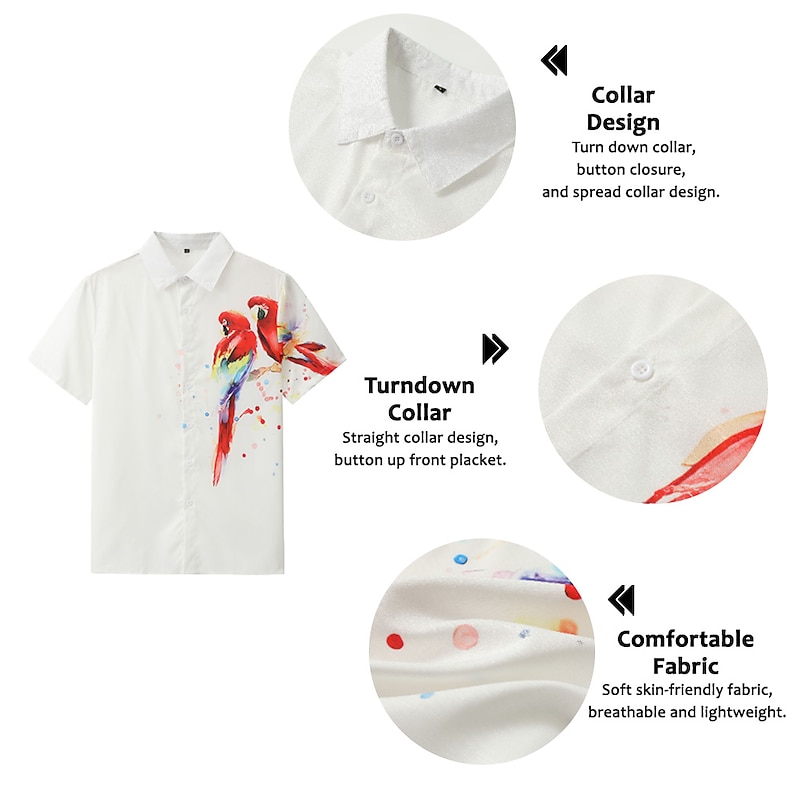 More information about Men's Parrot Shirt Summer Hawaiian Shirt Aloha Shirt Short Sleeves Shirt Turndown Fashion Designer Casual Outdoor Street Casual Pink Red Purple S M L