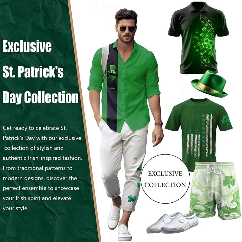$24.99 - St. Patrick Men's Graphic Shamrock Beer Lucky Irish T Shirt T shirt Tee Long Sleeve T shirt 3D Print Crew Neck Shirt Fashion Designer Casual Sports Outdoor Holiday Going out Black Blue Green Spring 2025. Shop for cheap St. Patrick's Day T shirts online? Buy at lightinthebox.com on sale today!