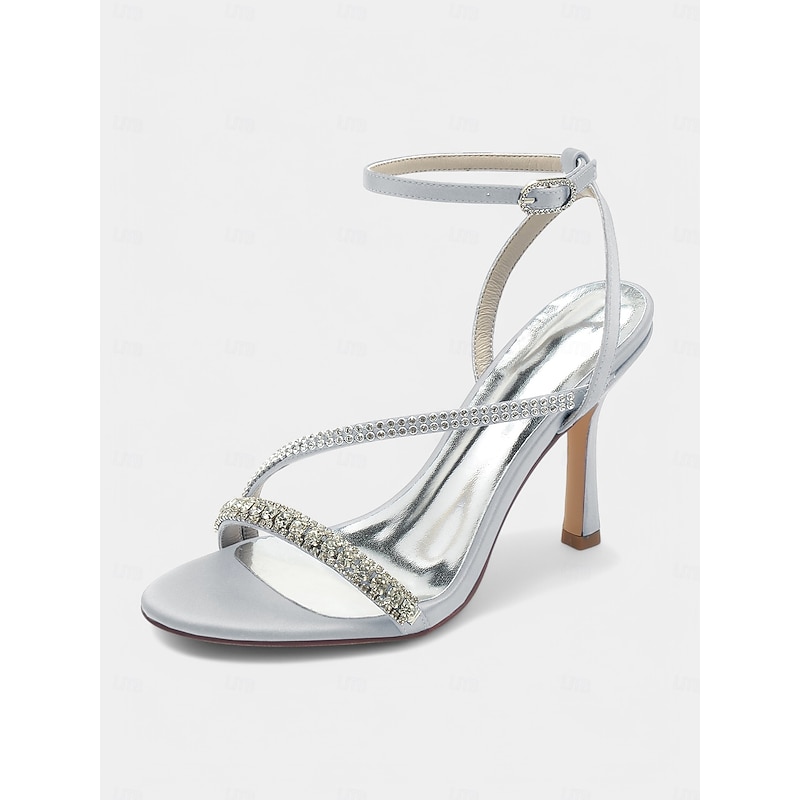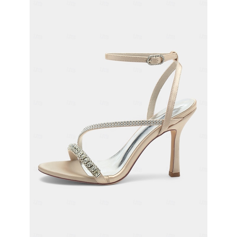Champagne Satin Strappy Rhinestone Heels – Sophisticated Wedding & Evening Sandals for Women 21