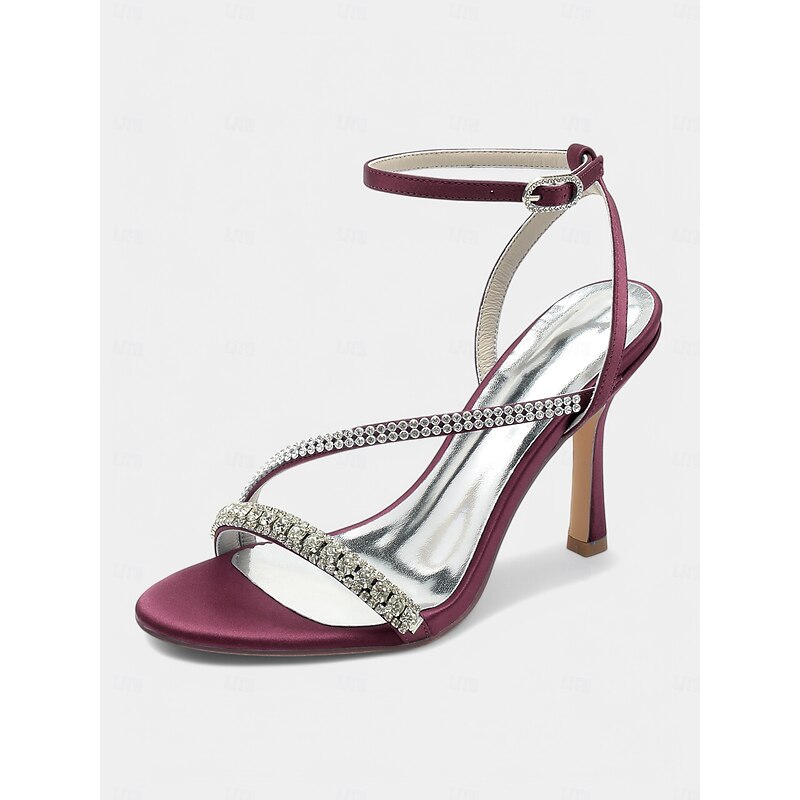 Champagne Satin Strappy Rhinestone Heels – Sophisticated Wedding & Evening Sandals for Women 19
