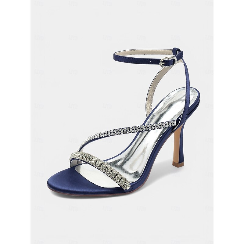 Champagne Satin Strappy Rhinestone Heels – Sophisticated Wedding & Evening Sandals for Women 22