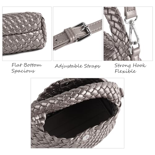 Woven Handbag For Women, Small Metallic Purse with Detachable Crossbody Strap, Girls Daily Top Handle Bag 5