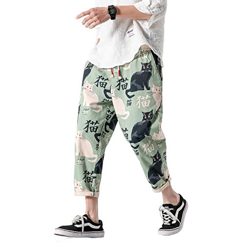 HOT ! PRIJOUHE Men's Casual Capri Pants Elastic Waist Wide Leg Loose Baggy Harem Pants Breathable Summer Beach Pant