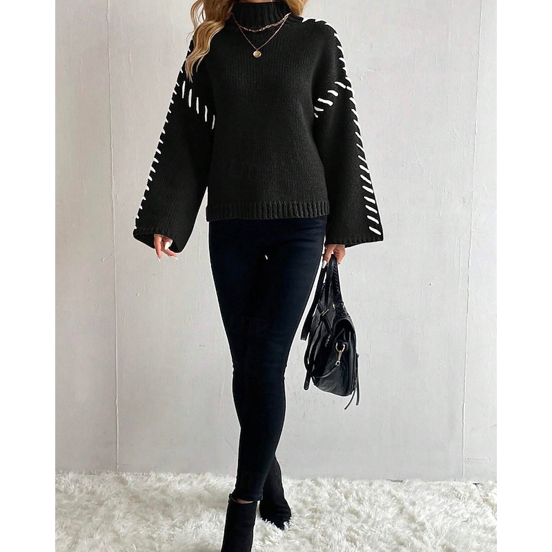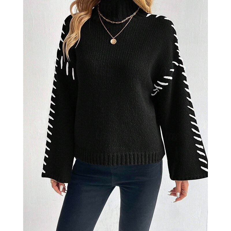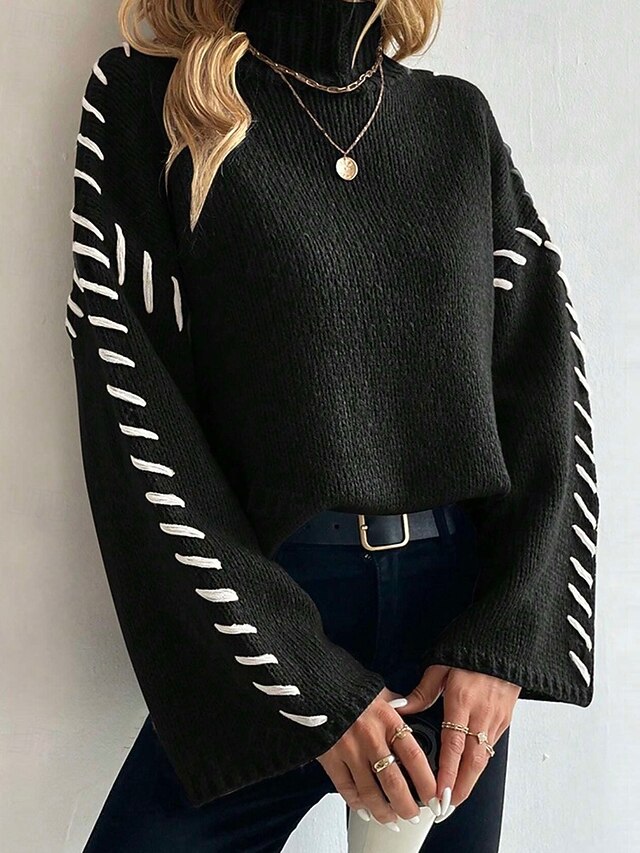 More information about Women's Sweater Pullover Fashion Casual Pure Color Ribbed Turtleneck Knitted Long Sleeve Regular Tops Knit Outdoor Daily Weekend Black Fall Winter