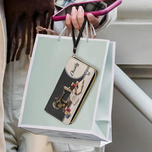 HOT ! Personalized Sewing Machine Leather Wallet Custom Name Sewing Wallet Funny Mom Purse Gift For Women Mom Grandma Xmas Birthday Anniversary (style 3)