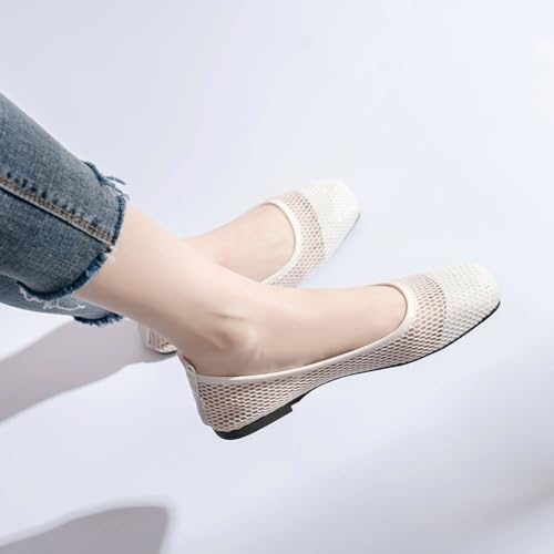 Origin: ImportedSole material: RubberOuter material: LeatherClosure type: No-closureBreathable MeshοΌThis knit flats shoes uses the top of mesh and hollow out design, which increases the sense of design and is more breathable. These ballet flats will keep your feet cushy and dryLightweight & Cushioned Support: Designed with lightweight soft memory foam insoles, the dress flats shoes for women provide exceptional comfort and support. The memory foam molds to your feet, reducing tired and enhancing your every stepStretchy & Comfortable Upper: Made with a flexible hollow upper, these womens black flats shoes offer a comfy yet stretchy fit that adapts to your foot shape. The elastic material ensures all-day comfort, making them good for walking, running, or casual wearSquare Toe Design: iconic square toe design, so that the feet have a relaxed comfort, appear more feminine, elegant wearing, highlighting your temperament. The lightweight outsole makes these women's dress shoes effortless to wear and good for travel or everyday commutesSuitable Occasion: The dress shoes are available in 2 classic colours, follow the collocation of your own style. Classic flats shoes easy to paired with casual clothes, jeans, shorts, skirts etc. Good choice for office working, at home, shopping or attend party, driving and traveling ect