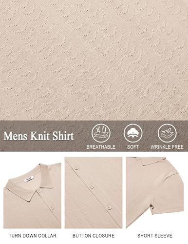 COOFANDY Men's Knit Shirts Short Sleeve Button Down Shirt Casual Summer Beach Shirt 3