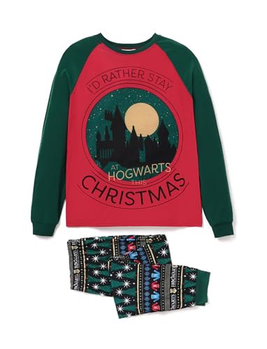 • Signature Design: This Harry Potter Christmas holiday pajamas is mainly red and green, with a pattern on it that says "I'D RATHER STAY AT HOGWARTS CHRISTMAS". The background of the pattern is Hogwarts Castle and the moon. The overall style is warm and festive, suitable for wearing with family during the holidays to create a happy family atmosphere.