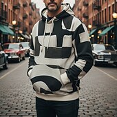 More information about Men's Horizontal Stripes Hoodie Fashion Daily Hooded Vacation Party Streetwear Black Grey Khaki Printing Fall Winter Designer