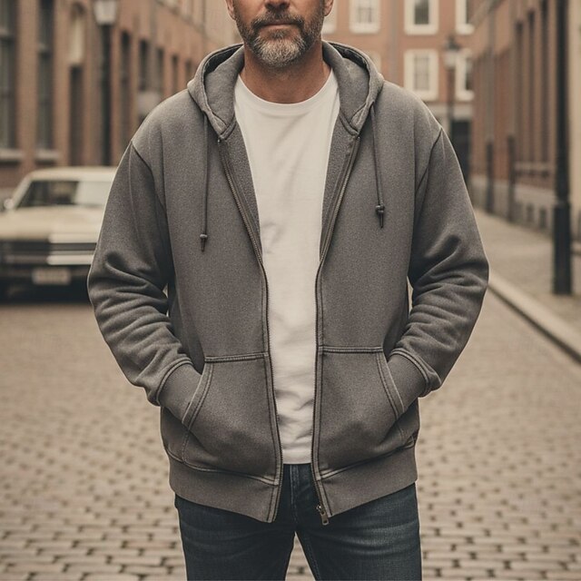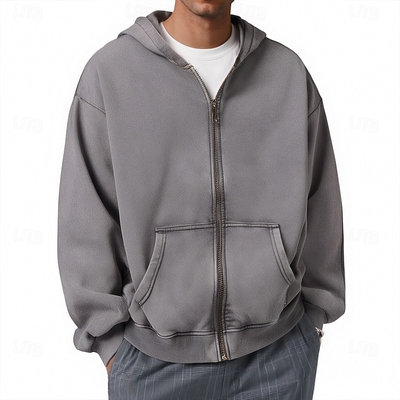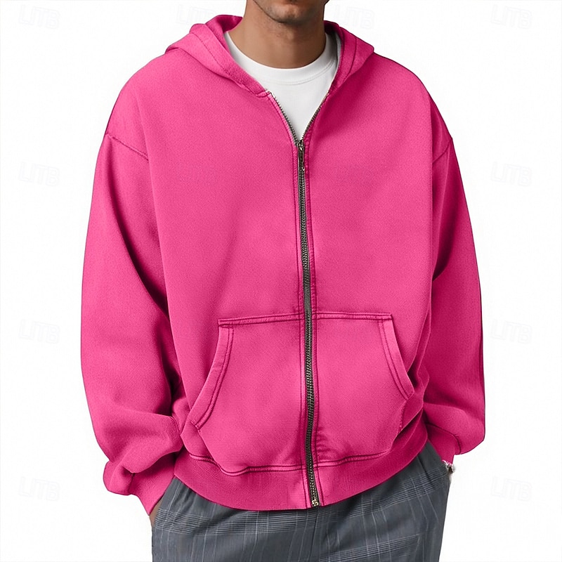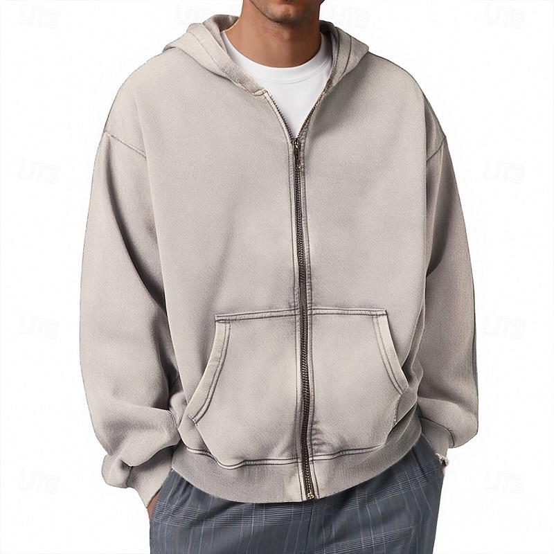 More information about Men's Full Zip Hoodie Pullover Hoodie Sweatshirt Distressed Hoodie Apricot Black Pink Coffee Gray Hooded Plain Pocket Casual Daily Going out Streetwear Casual Fall & Winter Clothing Apparel Hoodies