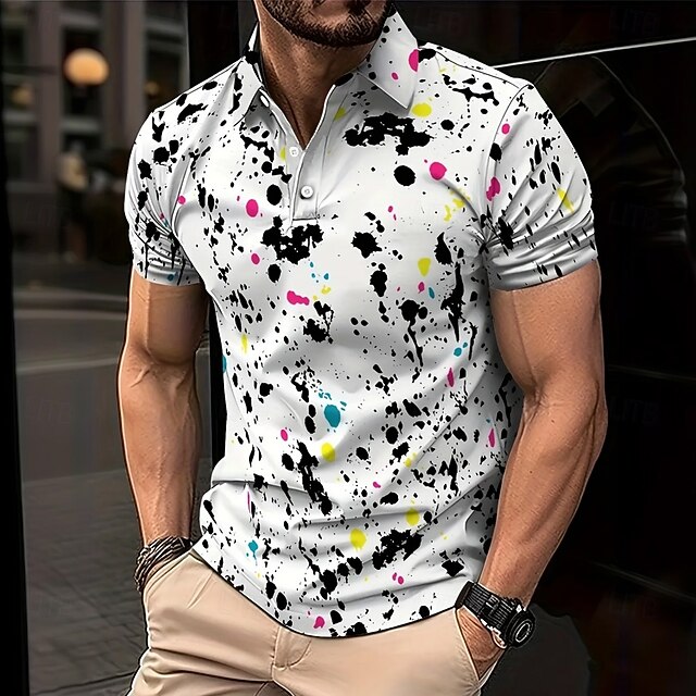 HOT ! Men's Graffiti Splash Ink Polo Short Sleeve Polo Shirts Collared Shirts Casual School Outdoor Daily Wear 3D Print Summer Black-white