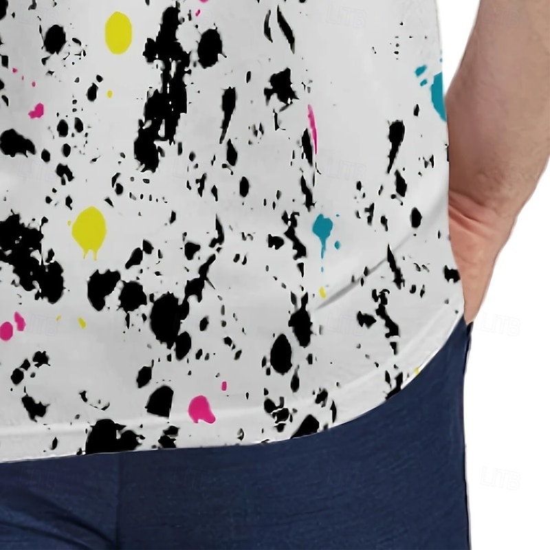 Men's Graffiti Splash Ink Polo Short Sleeve Polo Shirts Collared Shirts Casual School Outdoor Daily Wear 3D Print Summer Black-white 5