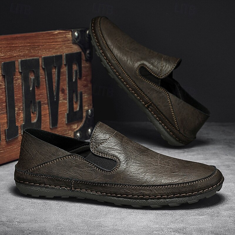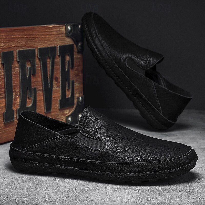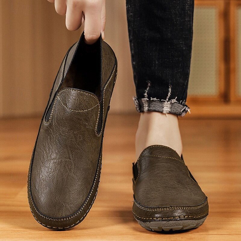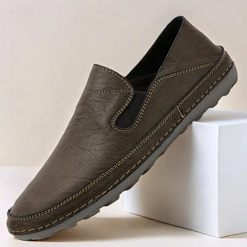 HOT ! Men's Slip-On Faux Leather Loafers – Comfortable Casual Shoes with Elastic Sides for Everyday Wear and Outdoor Activities