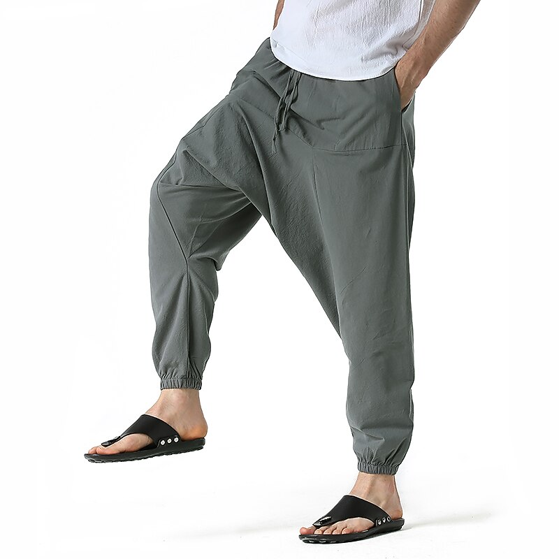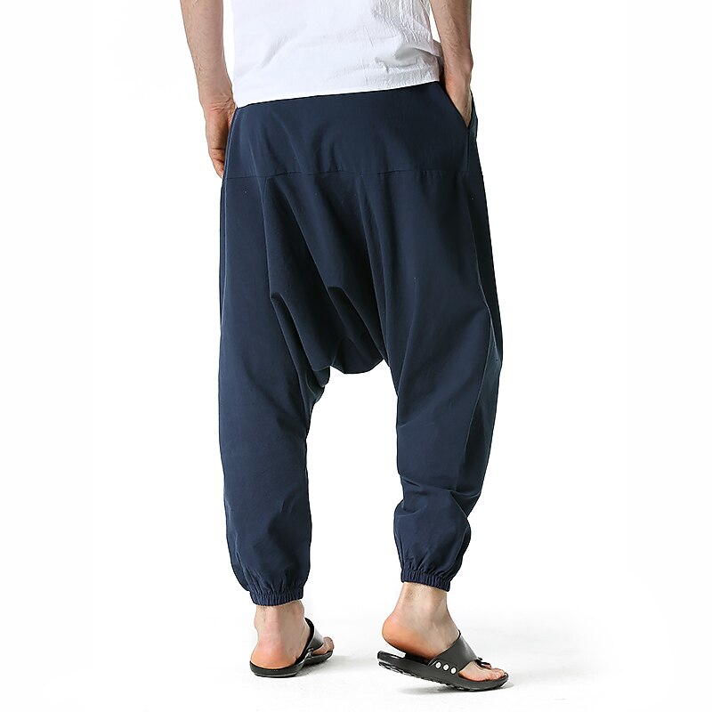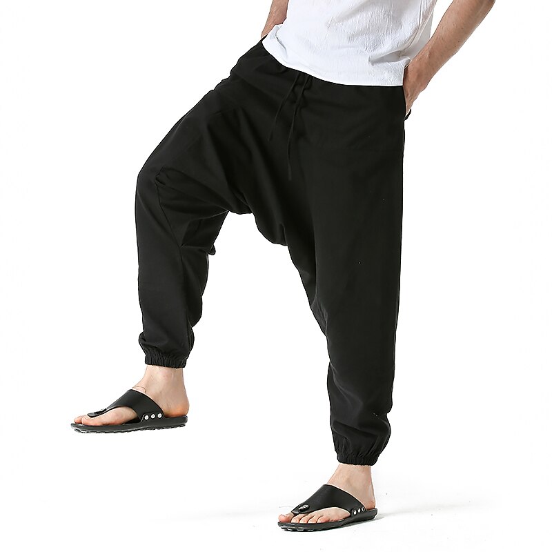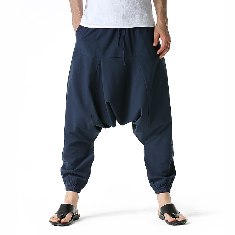 HOT ! Men's Harem Linen Pants Trousers Summer Pants Baggy Pants Drawstring Drop Crotch Plain Full Length Casual Daily Ethnic Style Boho Loose Fit Black Navy Blue