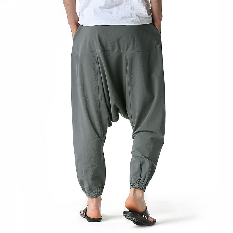 Men's Harem Linen Pants Trousers Summer Pants Baggy Pants Drawstring Drop Crotch Plain Full Length Casual Daily Ethnic Style Boho Loose Fit Black Navy Blue 9