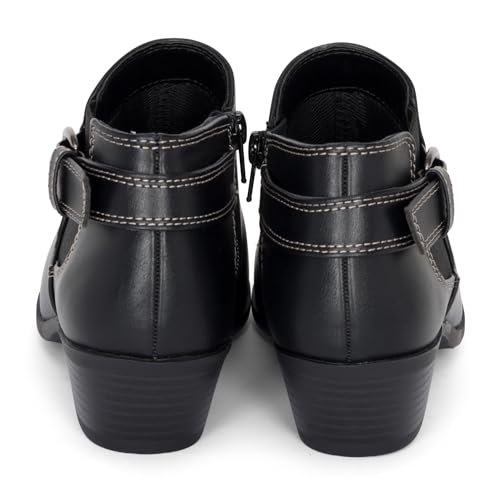 Chariot & Co: Kiki - Womens Western Chelsea Round Toe Ankle Boots - Adjustable Buckle Stacked Heel Booties 4