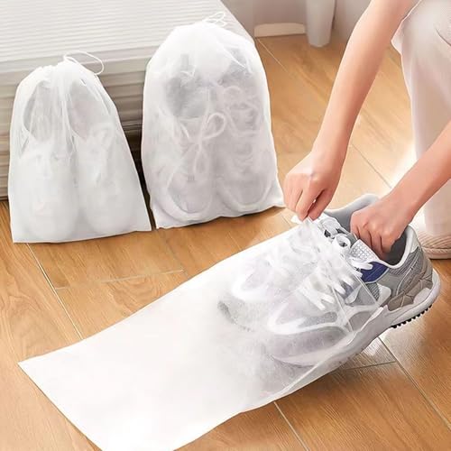 • Perfect Travel Companion: Our 100-pack shoe bags for travel are made from soft, breathable non woven material that's semi-transparent; Measuring 20 x 16 inches, travel shoe bag are perfect for all shoe types, from sneakers to dress shoes