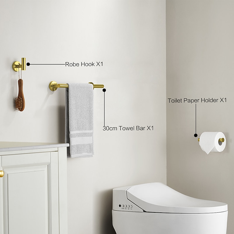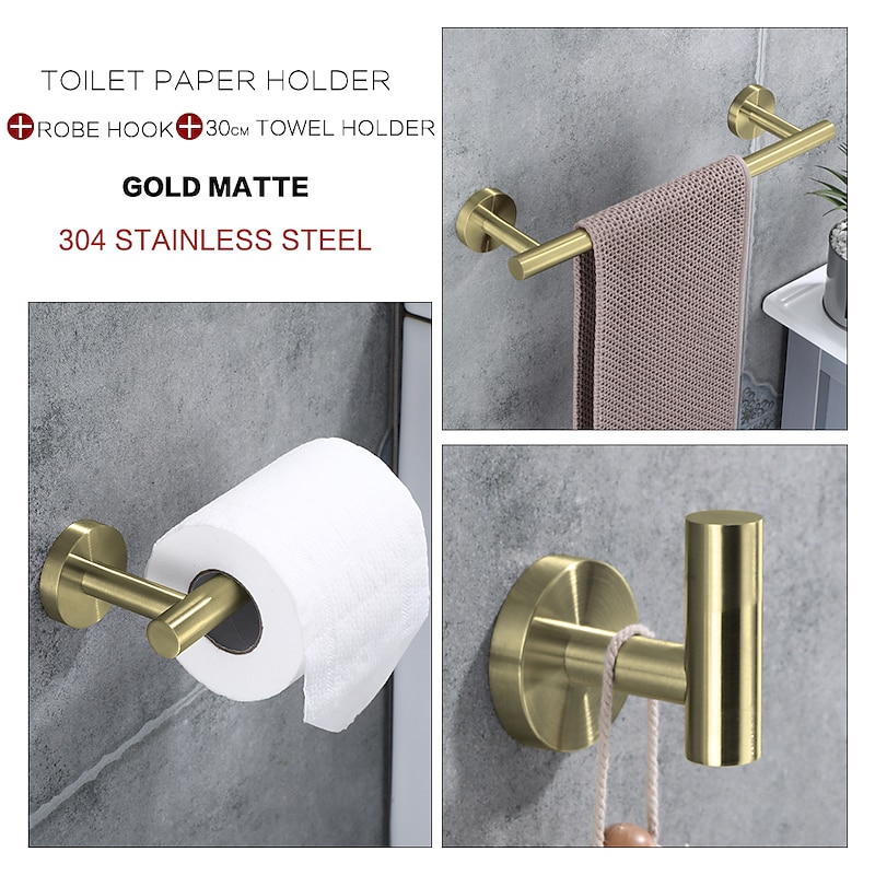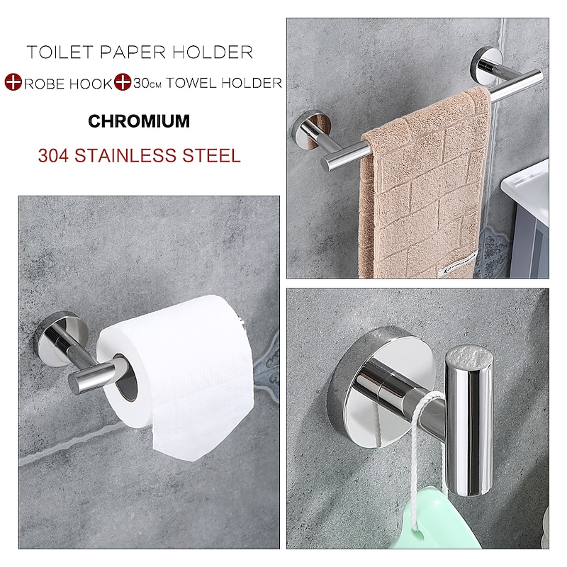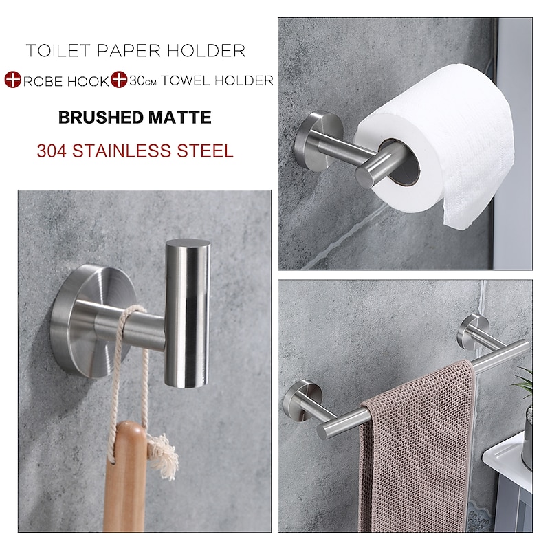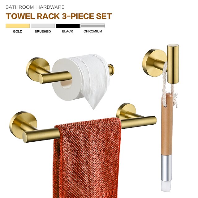 $63.99 - 3-Piece Stainless Steel Bathroom Towel Rack Set - Includes Towel Bar, Toilet Paper Holder, and Hook - Available in 4 Finishes: Polished Chrome, Brushed Nickel, Black, and Brushed Gold 2025. Shop for cheap Bathroom Accessory Set online? Buy at lightinthebox.com on sale today!