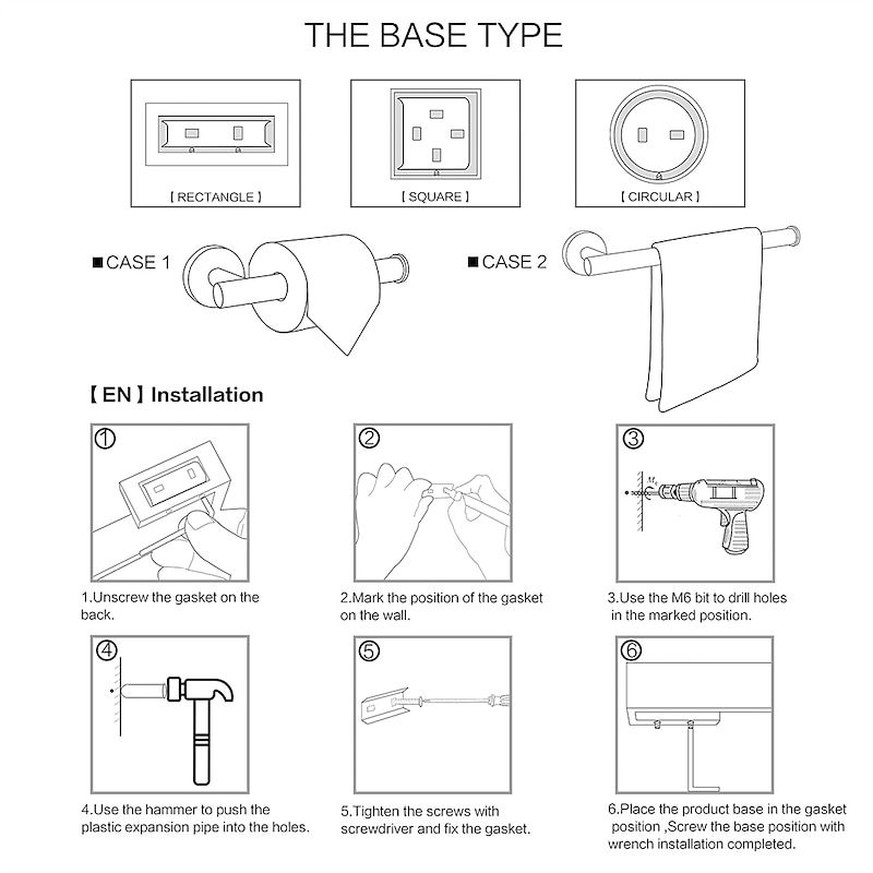 3-Piece Stainless Steel Bathroom Towel Rack Set - Includes Towel Bar, Toilet Paper Holder, and Hook - Available in 4 Finishes: Polished Chrome, Brushed Nickel, Black, and Brushed Gold 13