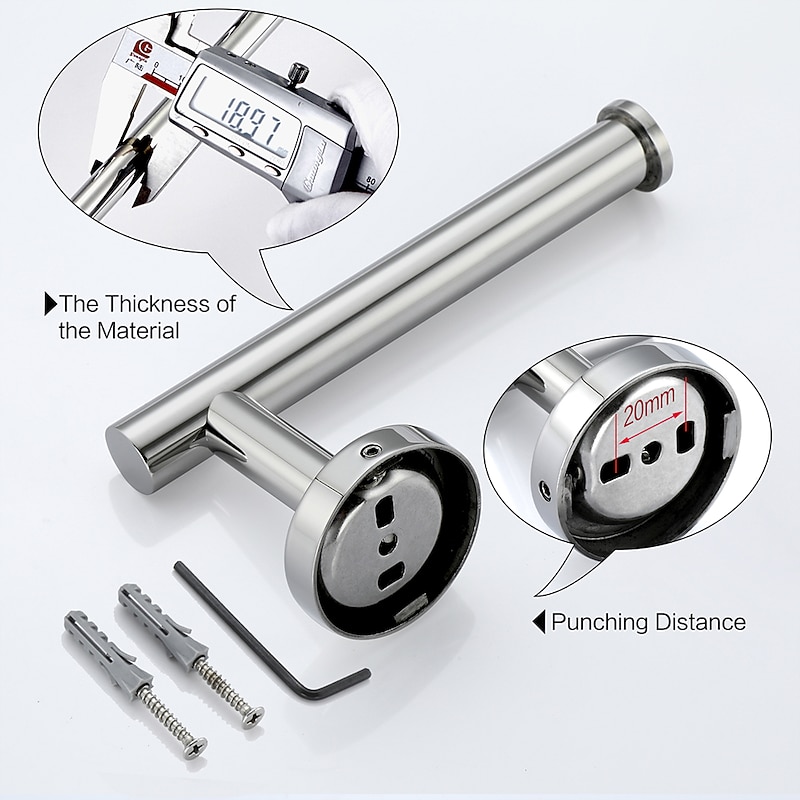3-Piece Stainless Steel Bathroom Towel Rack Set - Includes Towel Bar, Toilet Paper Holder, and Hook - Available in 4 Finishes: Polished Chrome, Brushed Nickel, Black, and Brushed Gold 15